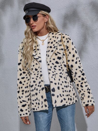 Dalmatian Print Fuzzy Coat - Multicolor - View 1