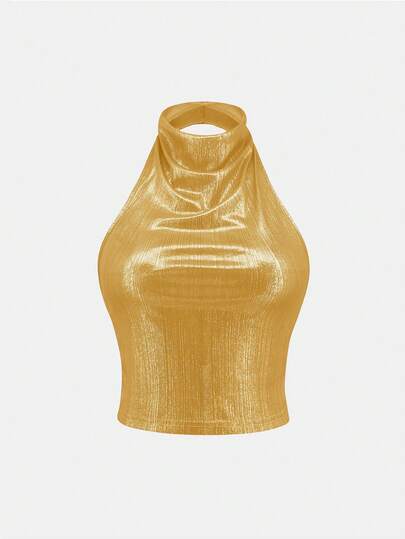 Elegant Sleeveless Shiny Knit Tank Top, Women Sparkly Top For Summer, Easter, Country Concerts, Graduation Brunch, Renaissance Fair, Yellow - Yellow - View 1