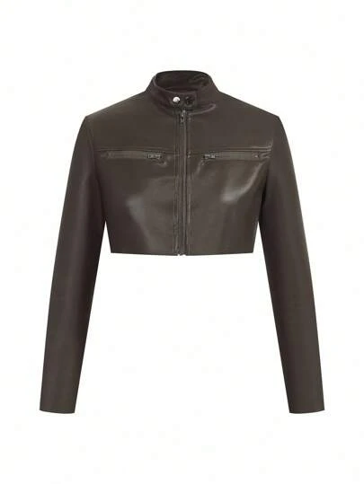 Dazy Designer Women Crop Jacket - Brown - View 1