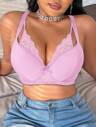 DesireSculpt 1pc Plus Size Lace Patchwork Wireless Bra