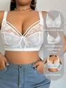 DesireSculpt 1pc Plus Size Lace Patchwork Underwire Bra