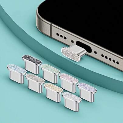 Diamond Glitter Dust Plug, Aluminum Alloy Material, Suitable For Apple 17 Pro Max, 16 Pro Max, 16 Plus, 17 Pro Max, 17 Air, 17 Pro Max Type-C Charging Port Protection Cover - Multicolor - View 1