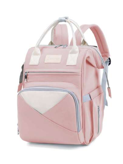 Baby Minimalist Multi-Function Large Capacity Polyester Diaper Backpack For Outdoor - Pink - View 1
