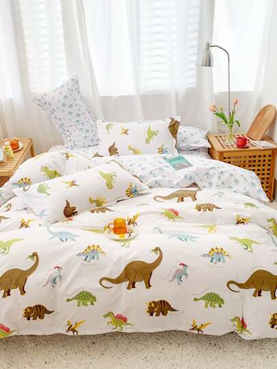 Dinosaur Pattern Duvet Cover Set(1 Duvet Cover & 2 Pillowcase), Modern Polyester Bedding Set For Home - Multicolor - View 14
