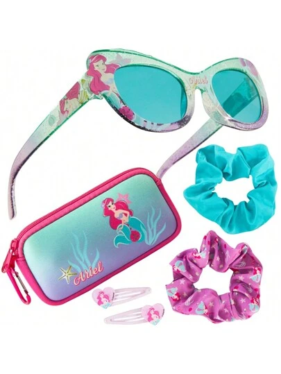 Disney Little Mermaid Ariel Set Sunglasses UV Protection Case 2 Scrunchies Hair Clips Accessories Set Gift - Multicolor - View 1