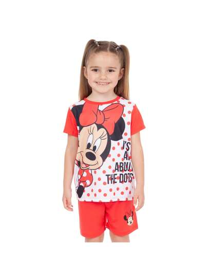 Disney Minnie Mouse Pyjamas | Girls Polka Dot Pyjamas | Kids Short PJs | Official Merchandise - Red - View 1