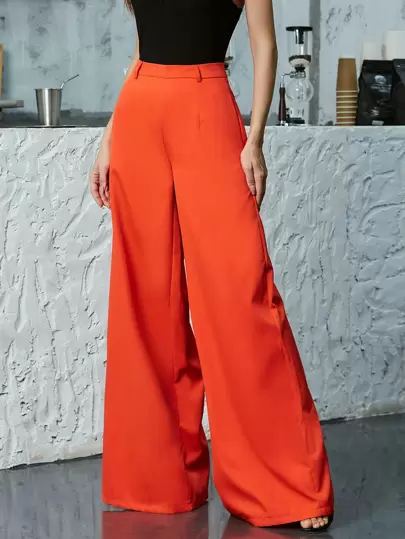 Double Crazy Zip Back Wide Leg Trousers - Orange - View 1