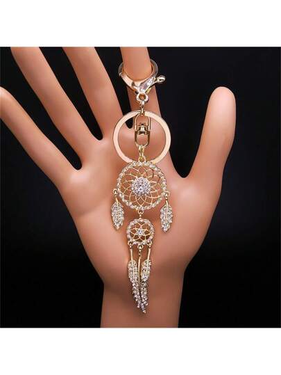 Dream Catcher Shinny Crystal Key Chain Women Rhinestone Bling Keychain Dreamcatcher Keyring Charm Car Bag Accessories - Dream Catcher - View 1
