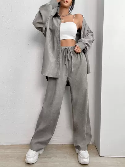Muchica Drop Shoulder Shirt & Drawstring Waist Trousers - Light Grey - View 1