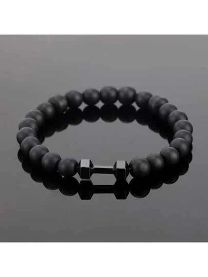 Dumbbell Decor Beaded Bracelet Glass Black - Black - View 1