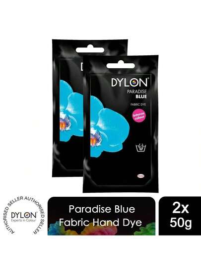 Dylon Hand Fabric Dye Sachets 2 Pack 50g Each For Clothes, Home Textiles, Soft Furnishings, Easy To Use For Customising And Refreshing Fabrics At Home - Paradise Blue - View 1