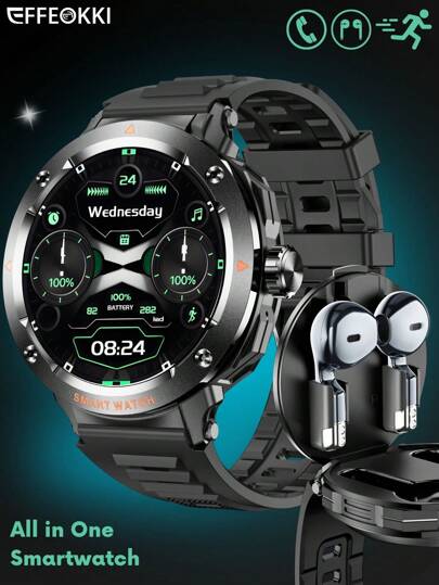 EFFEOKKI 2-In-1 Smart Watch With Earbuds For Men – Zinc Alloy Bezel, 1.46" Touchscreen, Wireless Calling, Music, NFC, Multiple Sports & Health Tracking, Compatible With IPhone/Android - D13/Black Strap/Zinc Alloy Bezel - View 1