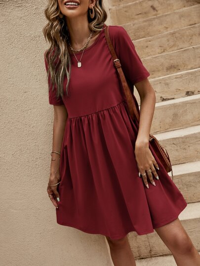 SHEIN LUNE Hidden Pocket Solid Dress - Burgundy - View 1