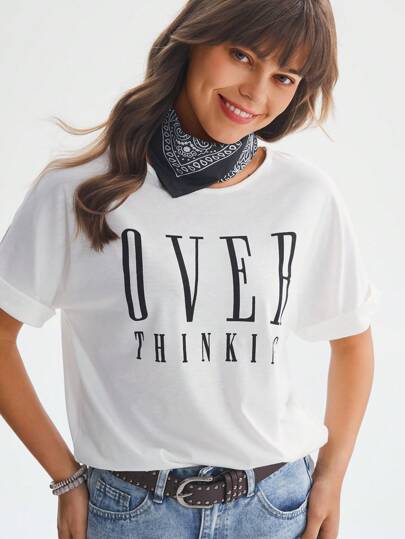 SHEIN LUNE Letter Graphic Batwing Sleeve Tee - White - View 6