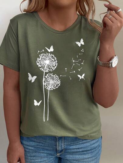 EMERY ROSE Women's Simple Printed Plus Size T-Shirt Graphic Tees Women Tops - Army Green - View 1