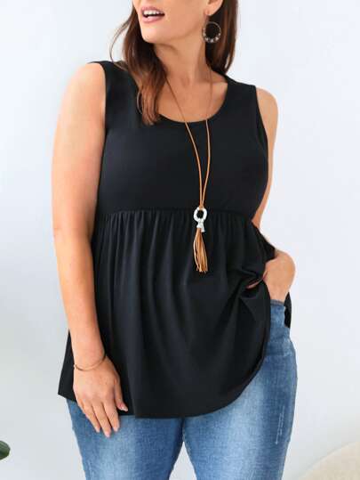 EMERY ROSE Plus Solid Peplum Tank Top - Black - View 1