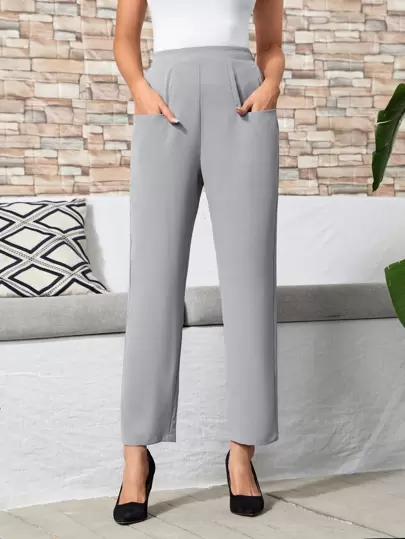 EMERY ROSE Pocket Front High Waist Trousers - Light Grey - View 1