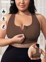 1pc White Front Zipper Seamless Hollow-Out Sports Bra, Wide Strap Plus Size Women Bra