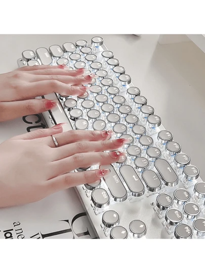 EWEADN TK100 Punk Mechanical Gaming Keyboard Wired- LED Backlit, Typewriter Keyboard Retro Style, Ergonomic Design Office Keyboards Full Size, Portable Computer Peripheral Accessories, Compatible With Windows/Laptop For Gamers - White - View 1