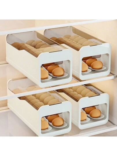 Egg Storage Box With Sliding Cover, Refrigerator Door Organizer, Kitchen Storage Box With Timer, Keeps Food Fresh - Multicolor - View 1