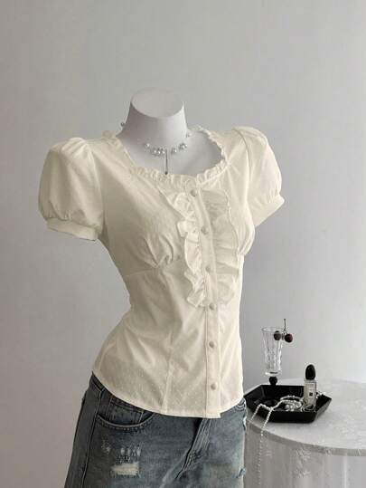 Elamini Women's Solid Color Minimalist Short Sleeve Blouse - Apricot - View 1