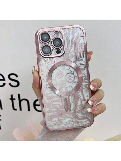 Electroplating Mechanical Pattern Mobile Phone Case, Magnetic Mobile Phone Case With Lens Film Protective Cover Suitable For IPhone14/14pro IPhone14ProMAXiPhone13pro Gift For Birthday, Mother, Family, Friends, Boyfriend, Girlfriend - Pink - View 1