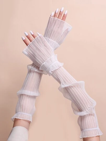 Elegant 1pair Women Ruffle Trim Fashionable Arm Sleeves For Outdoor - White - View 1