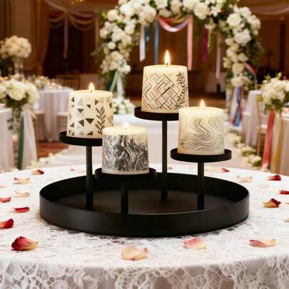 Elegant Metal Tray With 4 Candle Holders - Perfect For Home Decor, Tabletop Display, And Special Occasions (Candles Not Included), Small Rustic Tray Decor Candle - Black - View 1