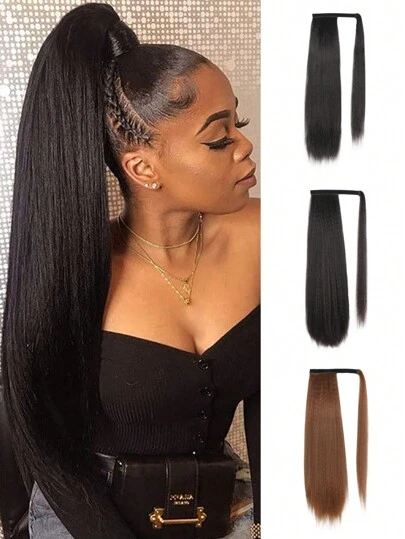 Elegant Women's Straight Hair Ponytail Extension, Yaki Texture Synthetic Drawstring Clip-In Ponytail Hairpiece, Versatile Style For All Users - Multiple Shades Available - Multicolor - View 1