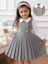 Elladie kids Young Girls' Plain Color Double-Breasted Wide-Leg Pleated Casual Pants Fall Winter