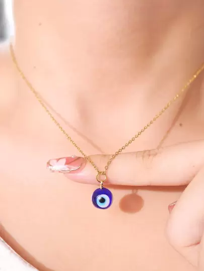 Evil Eye Charm Necklace - Multicolor - View 1