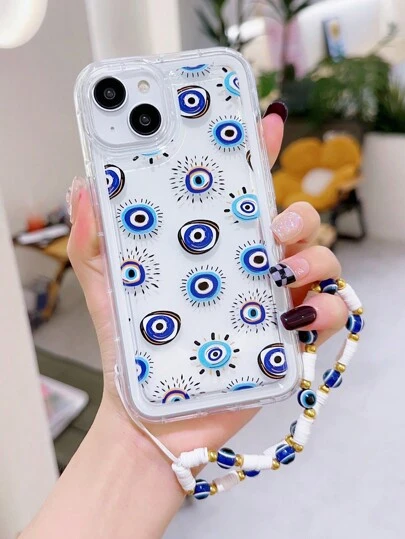 Evil Eye Pattern Clear Phone Case With Lanyard - Multicolor - View 1