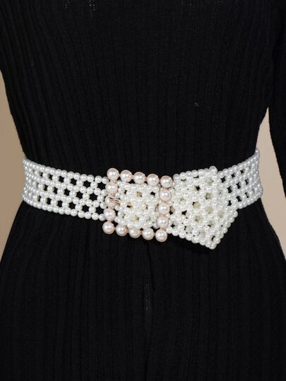 Extra Wide Heavy Duty Pearl Belt - White - View 1