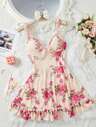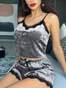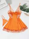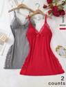 2pcs Lace Patchwork, Bow Decor, Romantic Side Slit Camisole Nightgown