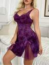 1pc Lace Trimmed Bowknot Front Slit Hem Cami Nightgown