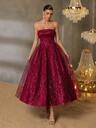 Faeriesty Style Elegant Strapless Satin Formal Evening Gown – Sleeveless Sweetheart Neckline, Petal-Trimmed Waist, Back Tie Detail & Flowing Skirt – Perfect For Weddings, Evening Galas, Celebrations & Red-Carpet Events