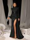 Faeriesty Style Elegant Sequin-Embellished Puffed Bishop Sleeve Evening Gown With Satin Mermaid Skirt & Draped Floor-Length – Ideal For Weddings, Formal Receptions, Dinner Parties & Red-Carpet Events New Year Outfit