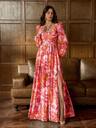 Elegant Vibrant Floral Print Maxi Gown With Fruit & Floral Motif - Lightweight Chiffon Fabric For Luxury Banquets, Red Carpet Events & Elegant Receptions,Party Dress,Formal,Evening,Wedding Guest