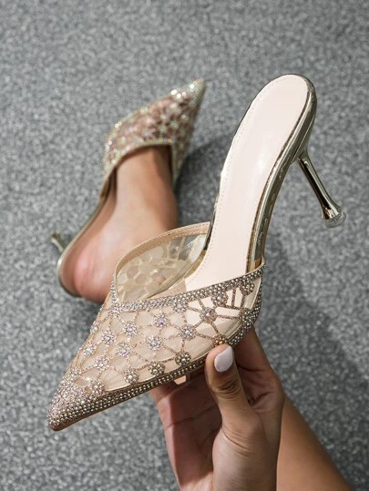Fall/Winter Women's High Heels Pointed Toe Rhinestone Decorated Formal Party Wedding Shoes,Elegant,Mule - Multicolor - View 1