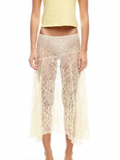 Women Sheer Lace Skirt Flower See Through Low Waist Casual Midi Skirt 2025 Clothing - Yellow - View 1