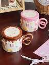 1 Set Floral Shaped 3D Flower Handle Ceramic Cup & Saucer, French Floral Latte Cup & Saucer, Vintage Inspired Dessert Cup & Saucer, Suitable For Restaurant, Living Room, Cafe, Gift