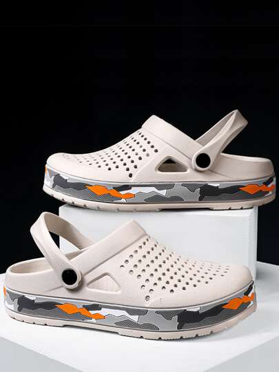 Fashion Beige Vented Clogs For Men, Hollow Out Two Way Wear Clogs - White - View 1