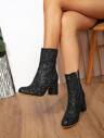Fall/Winter Women's Fashion Mid-Calf Boots, Round Toe Chunky Heel Glitter Boots, Minimalist High Heel Slim Boots, Boots