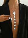 2pcs/Set Metallic Geometric Asymmetrical Hammered Texture Graduated Size Extra Long Pendant Necklace & Earrings Jewelry Set, Unique Persona Jewelry Set, Snake Bone Necklace Y-Necklace, Party Formal Dress Accessory