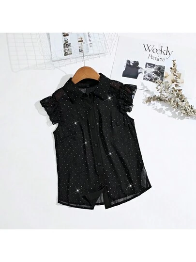 Fashion Rhinestone Decorated Chiffon Blouse, Fresh And Stylish Design For Younger Look, Cap Sleeves, Slimming - Black - View 1