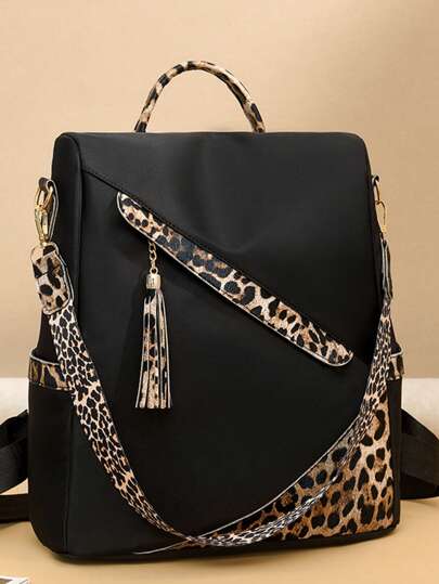 Fashion Women's Travel Laptop Backpack With Color Block , Stylish Anti-Theft Design, Suitable For School, Commute And Travel - Black - View 8