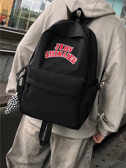 shinaier Fashionable High Capacity Student Letter Backpack With Keychain, Travel Bag - Black - View 1