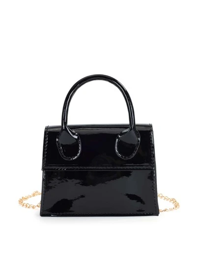 Plain Pattern Mini Fashion Chain Handbag - Black - View 1