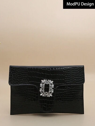 Fashionable Rhinestone Envelope Clutch Bag For Women, Elegant Clutch Bag For Women - Black - View 1