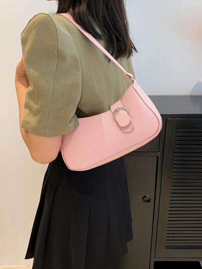 Fashionable Solid Color Flap Closure Shoulder Bag With Zipper For Bag - Pink - View 1